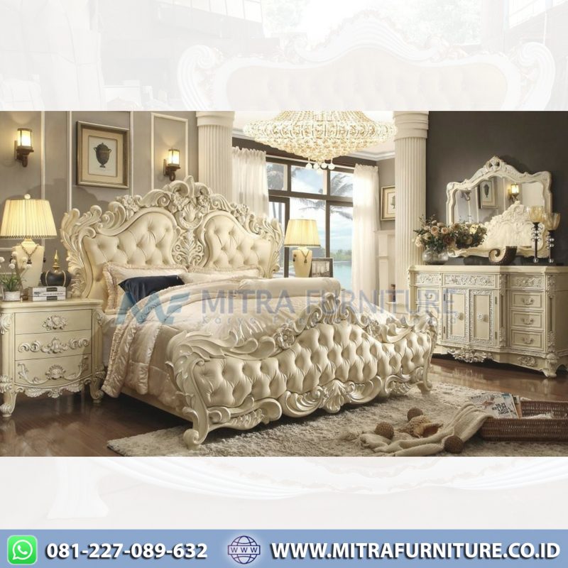 set kamar tidur mewah merupakan produk kamar tidur yang di buat oleh mitra furniture dengan bahan kayu mahogany. set kamar tersebut sangat cocok untuk ruangan kamar tidur yang berkonsep gaya mewah.