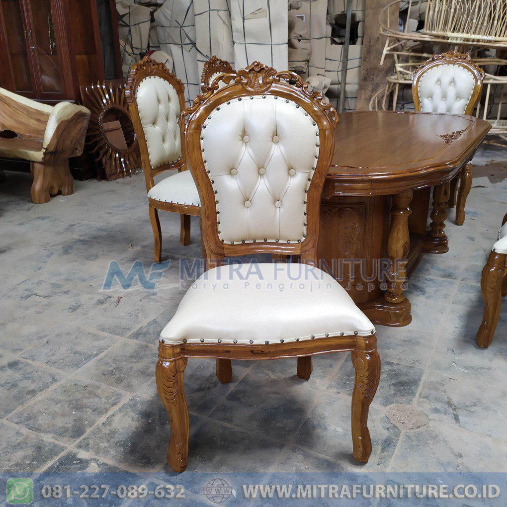 Set meja makan jati mewah oscar cream – Kayu jati atau solid merupakan salah satu material yang alami. Penggunaan material ini pada furniture rumah tangga ataupun dekorasi akan memberikan kesan mewah. Makanya banyak orang menginginkan produk yang terbuat dari bahan alami ini di rumah mereka. Selain itu harga jual kayu solid pun cukup tinggi dan membuatnya menjadi salah satu peluang bisnis yang cukup menjanjikan.