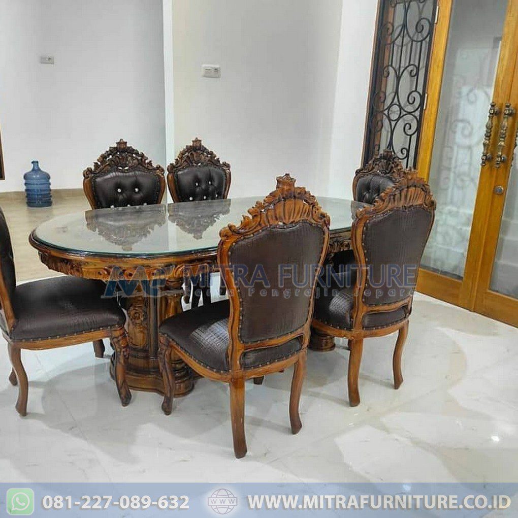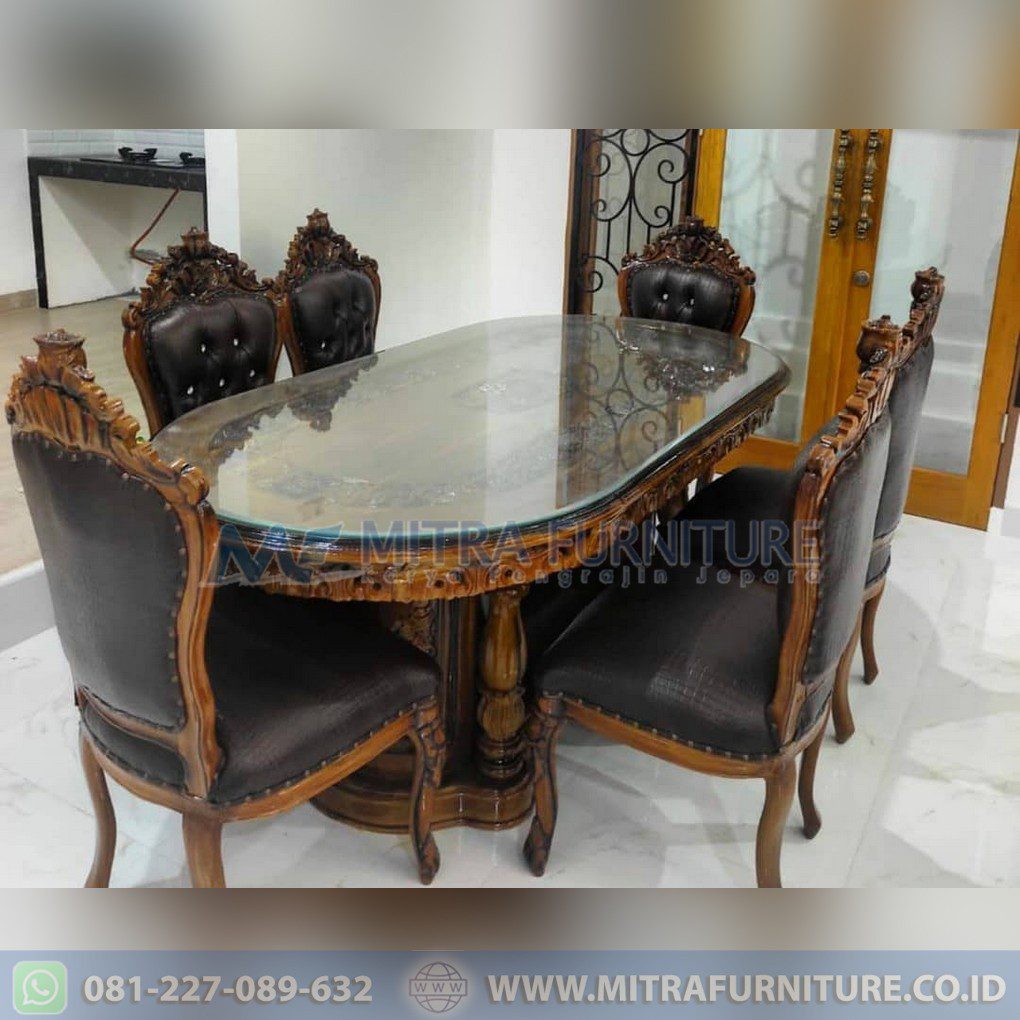 Apakah Anda sedang mempertimbangkan untuk membeli set meja makan oval mewah ukir jati untuk menikmati keindahan klasik? Pilihan meja kursi makan mewah ini tentunya semakin populer di kalangan masyarakat. Hal tersebut dikarenakan materialnya benar-benar berkualitas tinggi karena diambil langsung dari bahan alami.Kayu sendiri merupakan bahan pilihan terbaik, jadi meskipun sangat padat tapi bisa dibentuk sesuai dengan keinginan. Jadi bentuknya pun sangat bervariasi dengan tingkat kesulitan berbeda-beda.